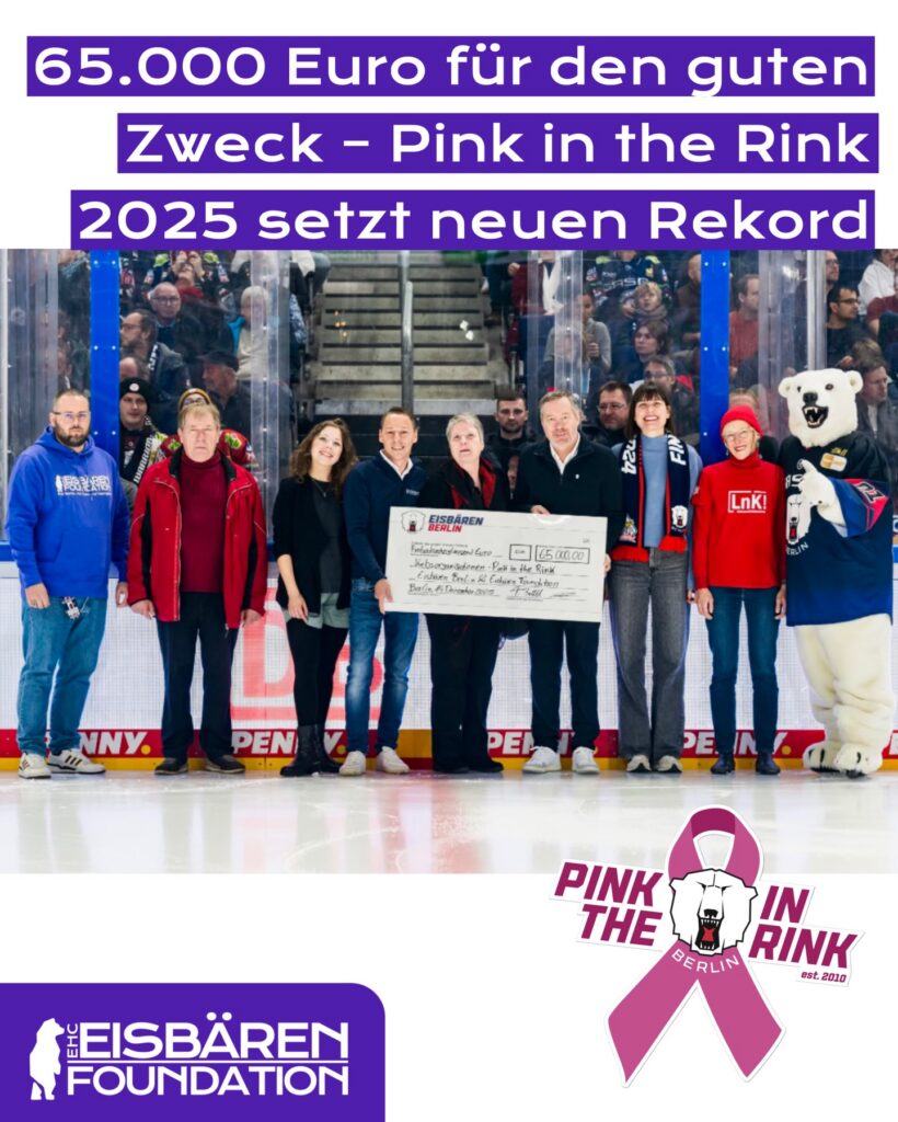 Mit Pink in the Rink 2025 konnten wir gleich mehrere Spendenrekorde brechen – nicht nur am großen Aktionstag, sondern auch in der Gesamtsumme. 65.000 Euro – ein neuer Bestwert zugunsten unserer fünf langjährigen Partnerorganisationen.